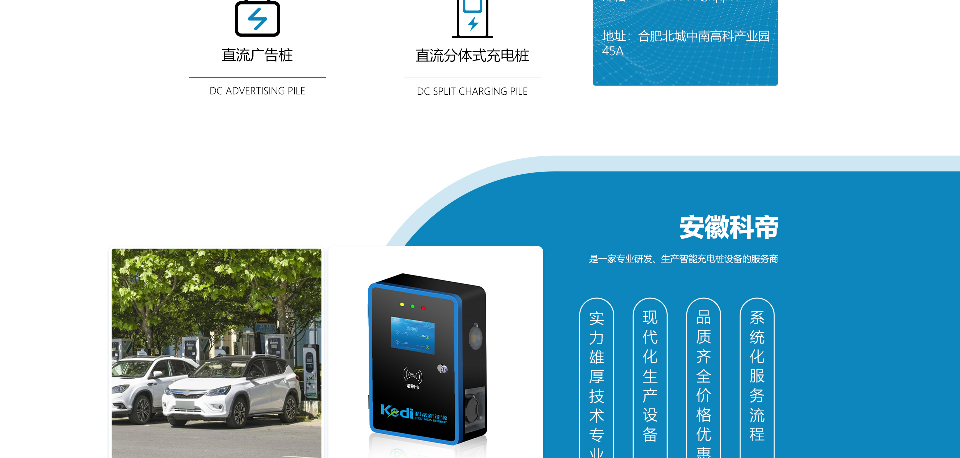 關(guān)于我們安徽科帝新能源科技有限公司坐落于安徽省會(huì)-合肥,是一家研發(fā)、生產(chǎn)智能充電樁設(shè)備,汽車充電站后臺(tái)監(jiān)控管理系統(tǒng)和生產(chǎn)高壓開關(guān)設(shè)備的企業(yè).由專門的研發(fā)團(tuán)隊(duì)、管理團(tuán)隊(duì)按照現(xiàn)代化企業(yè)制度規(guī)范設(shè)立的有限責(zé)任公司。致力于為能源智能、安全的應(yīng)用和節(jié)能減排提供整體的技術(shù)與產(chǎn)品解決方案。科帝集研發(fā)、設(shè)計(jì)、生產(chǎn)、銷售以及服務(wù)于一體,在電動(dòng)汽車充電方案,充電設(shè)施建設(shè)和城市配電方面擁有廣泛的技術(shù)研究及經(jīng)驗(yàn)積累,為客戶提供安全、智能的充電設(shè)備及充電運(yùn)營(yíng)站建設(shè)一體化解決方案。并堅(jiān)持以人為本、質(zhì)量為先、顧客至上、不斷創(chuàng)新”的企業(yè)理念,為能源行業(yè)的發(fā)展、節(jié)能減排做出重大的貢獻(xiàn)。公司擁有豐富的產(chǎn)品種類,目前科帝已研發(fā)生產(chǎn)了三十多種產(chǎn)品,充電設(shè)備有直流一體式充電樁、直流分體式充電樁、直流廣告樁、交流廣告樁、廣告一體樁、壁掛交直流樁;等多種充電設(shè)備;每一款產(chǎn)品都是精心打造,力求為客戶提供優(yōu)越的用戶體驗(yàn)。展望未來(lái)科帝將通過(guò)持續(xù)的自...